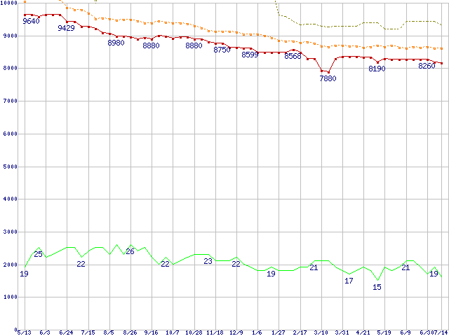 | ST3120026A (120GB)の価格推移 | | | (2004年5月13日~2005年7月14日) |