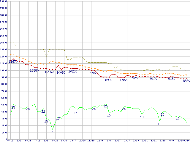 | HDS722516VLSA80 (160GB,8MB)の価格推移 | | | (2004年5月13日~2005年7月14日) |