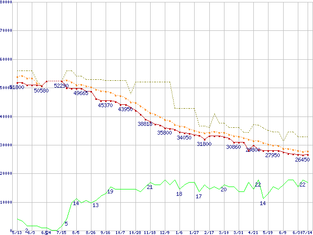 | HDS724040KLSA80 (400GB,8MB)の価格推移 | | | (2004年5月13日~2005年7月14日) |
