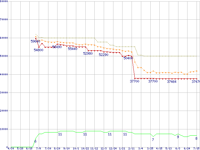 | Xeon 3.2GHz(FSB800)の価格推移 | | | (2004年4月30日~2005年7月15日) |