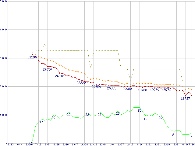 | 6B300S0 (300GB,16MB)の価格推移 | | | (2004年5月13日~2005年7月14日) |