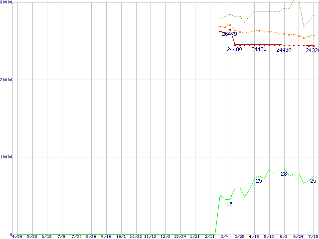 | Pentium 4 630 (3GHz)の価格推移 | | | (2004年4月30日~2005年7月15日) |