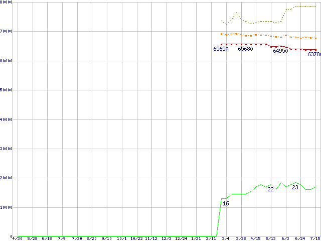 | Pentium 4 660 (3.60GHz)の価格推移 | | | (2004年4月30日~2005年7月15日) |