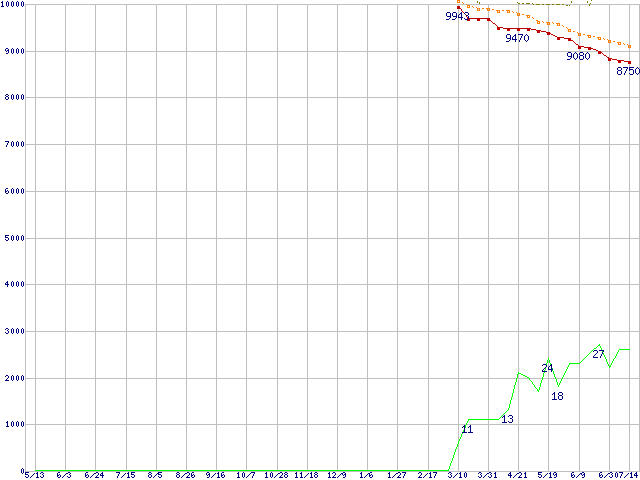 | HDT722516DLAT80 (160GB,8MB)の価格推移 | | | (2004年5月13日~2005年7月14日) |