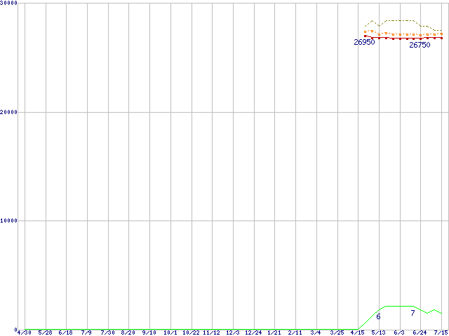 | Turion 64 MT-32 (1.8GHz,512KB) バルクの価格推移 | | | (2004年4月30日~2005年7月15日) |