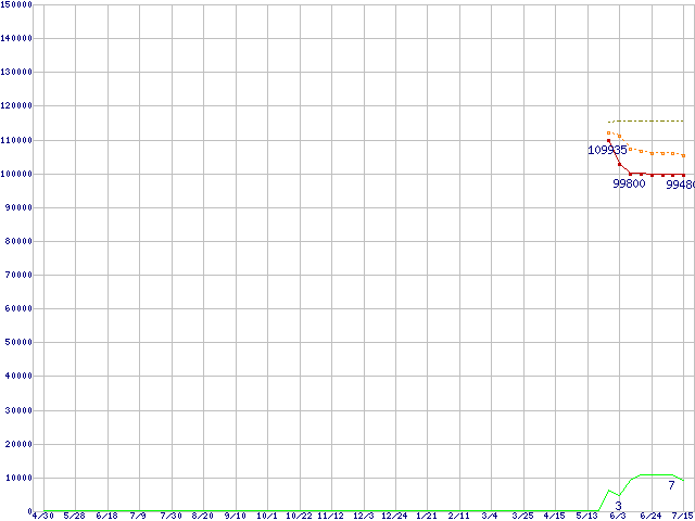 | Opteron 265(1.8GHz)の価格推移 | | | (2004年4月30日~2005年7月15日) |