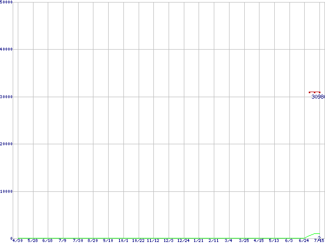 ※このグラフは過去のデータも税率5%相当に調整した税込み相当額のグラフです。 税率変更や、総額表示方式導入(2004年4月)の影響は除いています。 | | | ●凡例 | 最安値 (点線部は販売店未確認 または未調査) | 平均値 | 最高値 | ショップ数 |