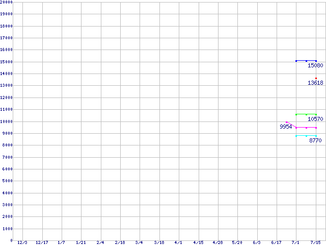 | LGA 775 (FC-LGA42,533MHz,L2 256KB,Prescott,EM64T・NX bit対応)の最安値推移 | | | (2004年12月3日~2005年7月15日) |