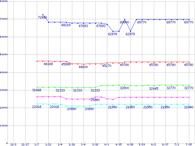 mPGA479M (Micro-FCPGA ,FSB 400MHz,L2 2MB,Dothan)の最安値推移