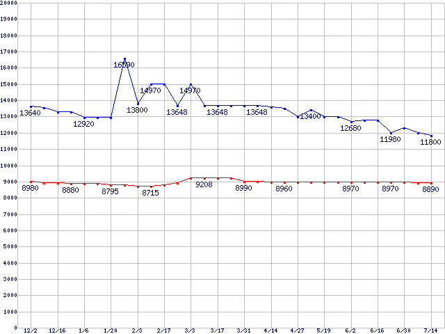 | WD Caviar[Special Edition] (7200rpm,Ultra ATA/100,8MB)の最安値推移 | | | (2004年12月2日~2005年7月14日) |