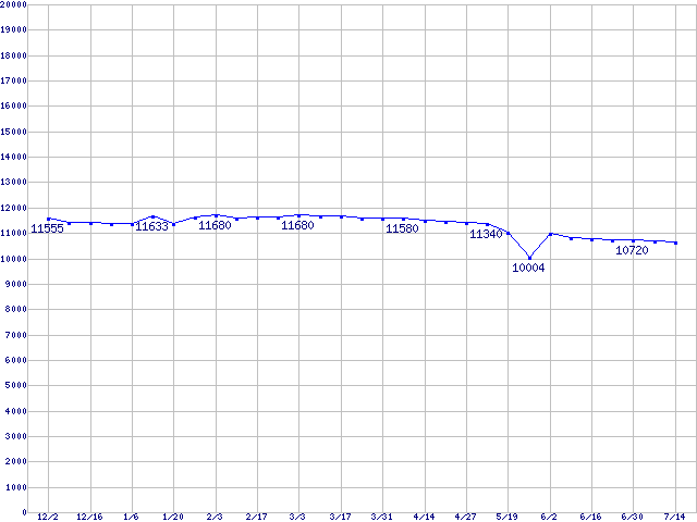 | Barracuda 7200.7 Plus (7200rpm,Ultra ATA/100,8MB,100GB/Platter)の最安値推移 | | | (2004年12月2日~2005年7月14日) |