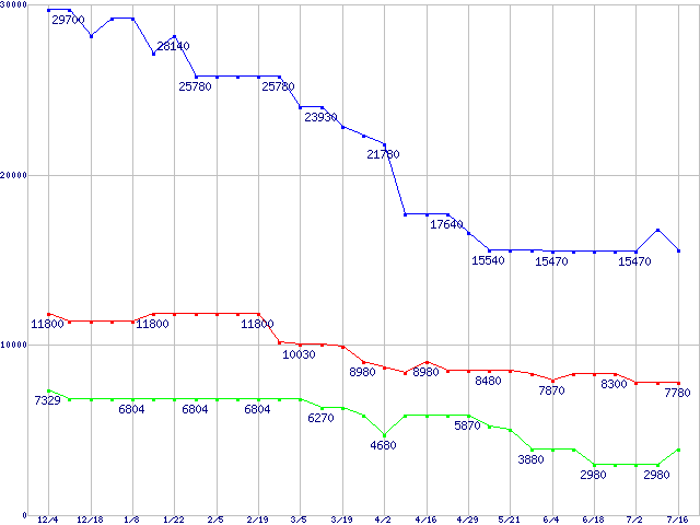 PC3200(DDR400) DDR SDRAM DIMMの最安値推移