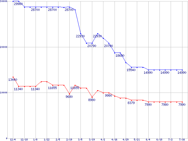 PC2-4200*(DDR2-533) DDR2 SDRAM DIMMの最安値推移