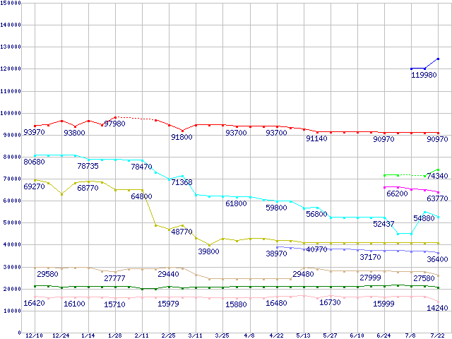 | Socket 939・FSB 1000MHzの最安値推移 | | | (2004年12月10日~2005年7月22日) |