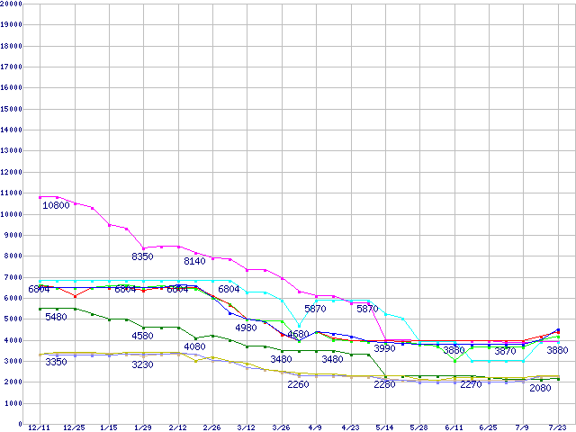 メモリ主要製品(最安値5千円~1万円未満)の最安値推移