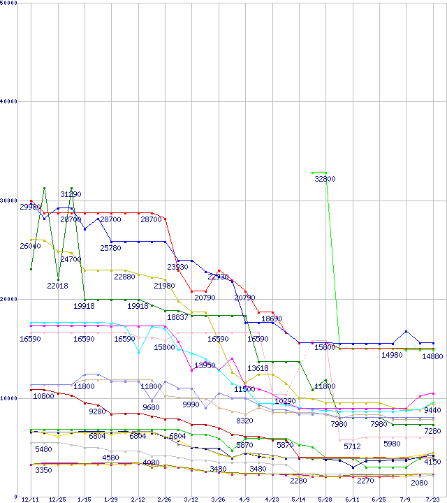 ※点線部は販売店が確認できなかった、または調査データがないことを示します