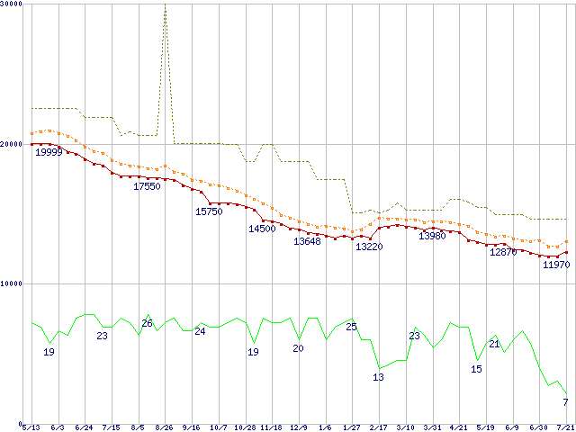 | 7Y250P0 (250GB)の価格推移 | | | (2004年5月13日~2005年7月21日) |