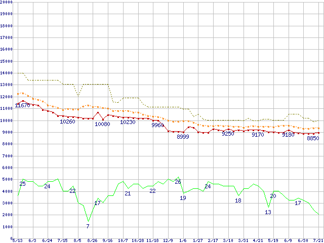 | HDS722516VLSA80 (160GB,8MB)の価格推移 | | | (2004年5月13日~2005年7月21日) |