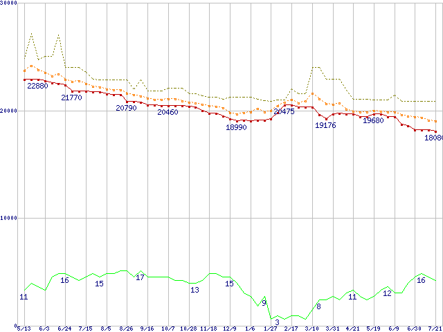 | WD740GD (74.3GB)の価格推移 | | | (2004年5月13日~2005年7月21日) |