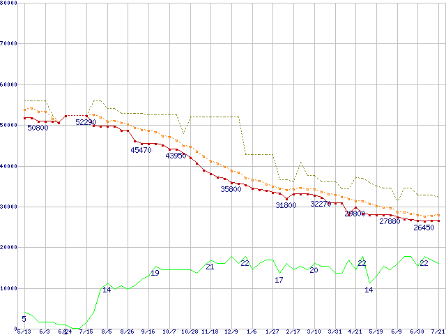 | HDS724040KLSA80 (400GB,8MB)の価格推移 | | | (2004年5月13日~2005年7月21日) |