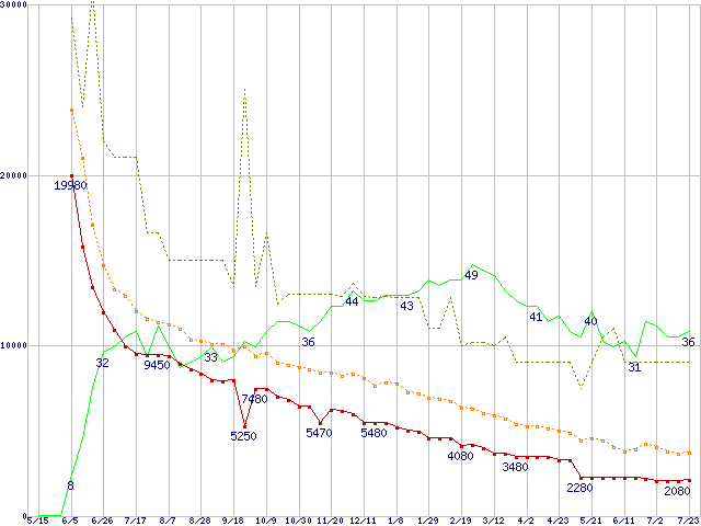 | PC2-4200* 256MBの価格推移 | | | (2004年5月15日~2005年7月23日) |