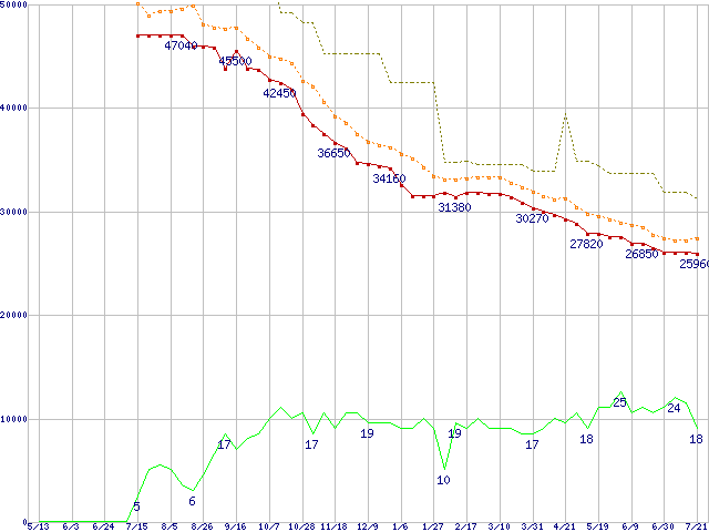 | HDS724040KLAT80 (400GB,8MB)の価格推移 | | | (2004年5月13日~2005年7月21日) |