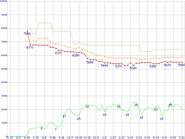 | HDS728080PLAT20 (80GB,2MB)の価格推移 | | | (2004年5月13日~2005年7月21日) |