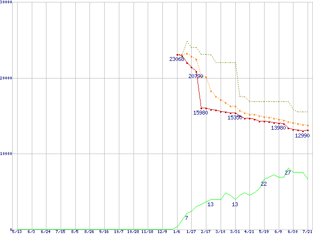 | ST3250823AS (250GB)の価格推移 | | | (2004年5月13日~2005年7月21日) |