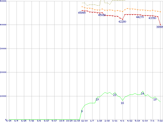 | Pentium 4 560J (3.60GHz)の価格推移 | | | (2004年5月14日~2005年7月22日) |