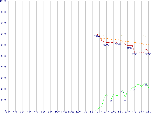 | HDS728080PLA380 (80GB,8MB)の価格推移 | | | (2004年5月13日~2005年7月21日) |