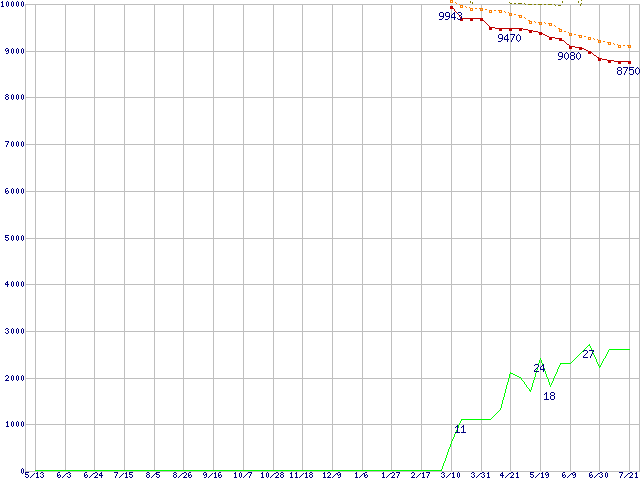 | HDT722516DLAT80 (160GB,8MB)の価格推移 | | | (2004年5月13日~2005年7月21日) |