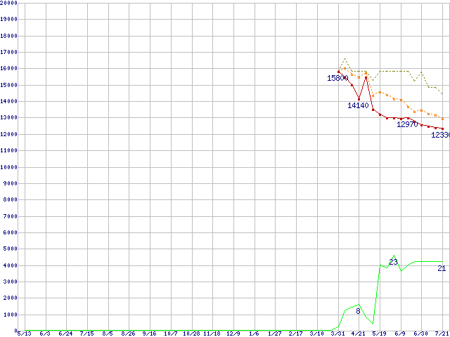 | HDT722525DLAT80 (250GB,8MB)の価格推移 | | | (2004年5月13日~2005年7月21日) |