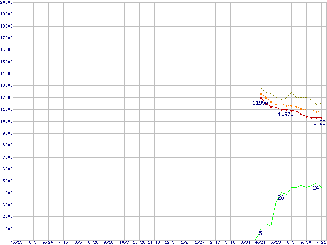 | 6L200M0 (200GB,8MB)の価格推移 | | | (2004年5月13日~2005年7月21日) |