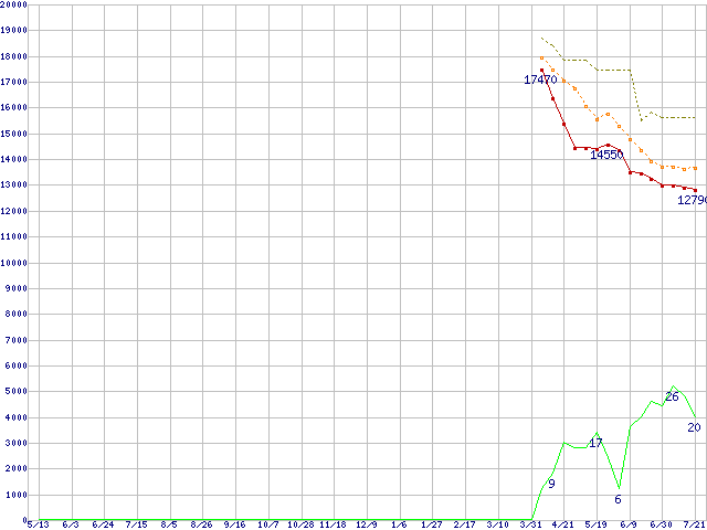 | HDT722525DLA380 (250GB,8MB)の価格推移 | | | (2004年5月13日~2005年7月21日) |
