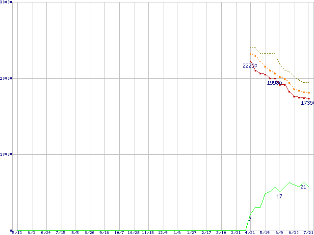 | 7L300S0 (300GB)の価格推移 | | | (2004年5月13日~2005年7月21日) |