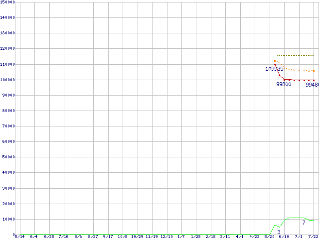 | Opteron 265(1.8GHz)の価格推移 | | | (2004年5月14日~2005年7月22日) |