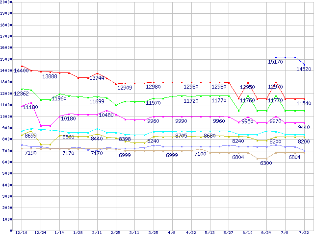 Socket 478 (FC-PGA2,533MHz,L2 256KB,Prescott)の最安値推移