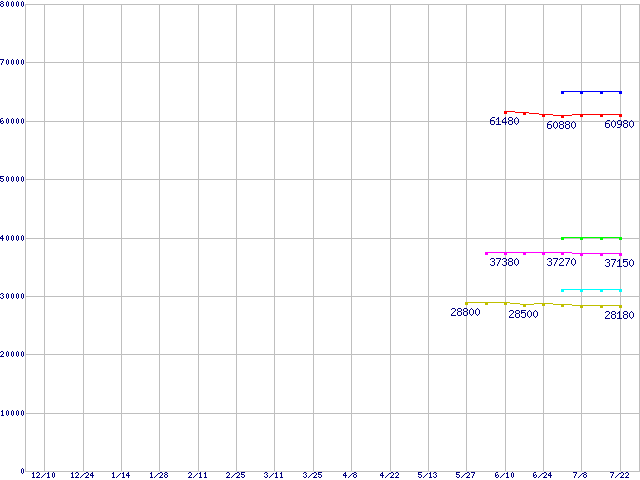 | LGA 775 (FC-LGA4,FSB 800MHz,L2 1MB×2,Dual Core,EM64T対応)の最安値推移 | | | (2004年12月10日~2005年7月22日) |