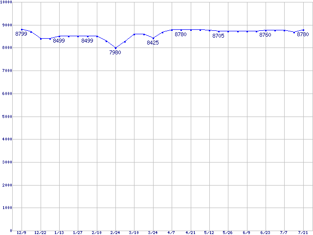 | DiamondMax Plus 9 (7200rpm,8MB,Serial ATA/150)の最安値推移 | | | (2004年12月9日~2005年7月21日) |