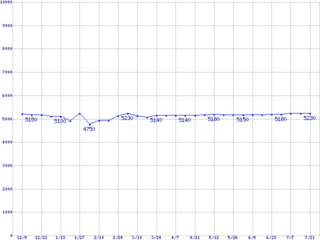 | DiamondMax Plus 8 (7200rpm,2MB,Ultra ATA/133)の最安値推移 | | | (2004年12月9日~2005年7月21日) |