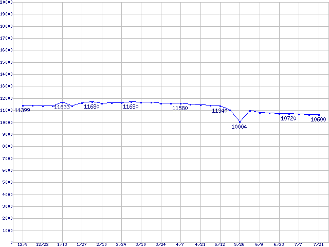 | Barracuda 7200.7 Plus (7200rpm,Ultra ATA/100,8MB,100GB/Platter)の最安値推移 | | | (2004年12月9日~2005年7月21日) |