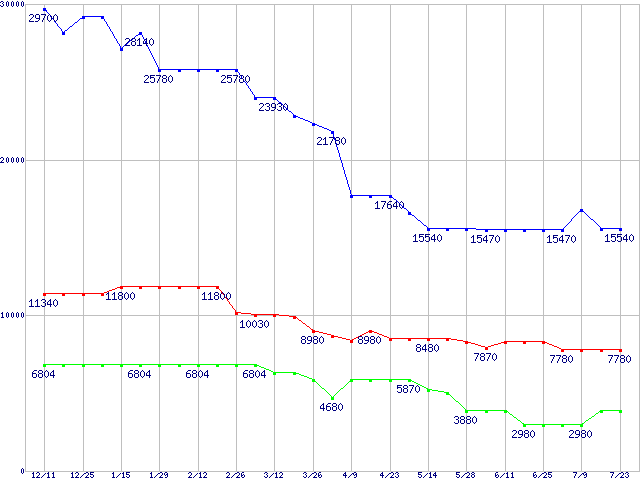 PC2700(DDR333) DDR SDRAM DIMMの最安値推移