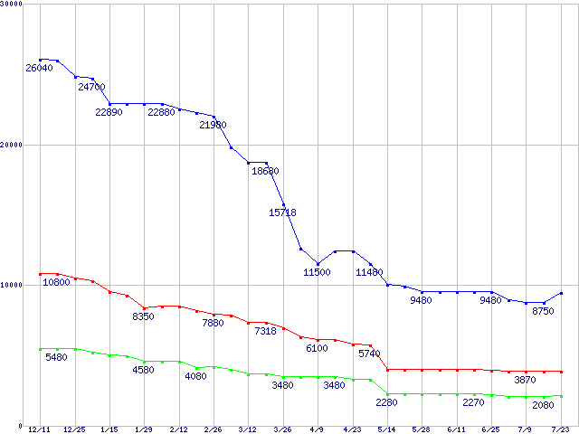 メモリ主要製品の最安値推移