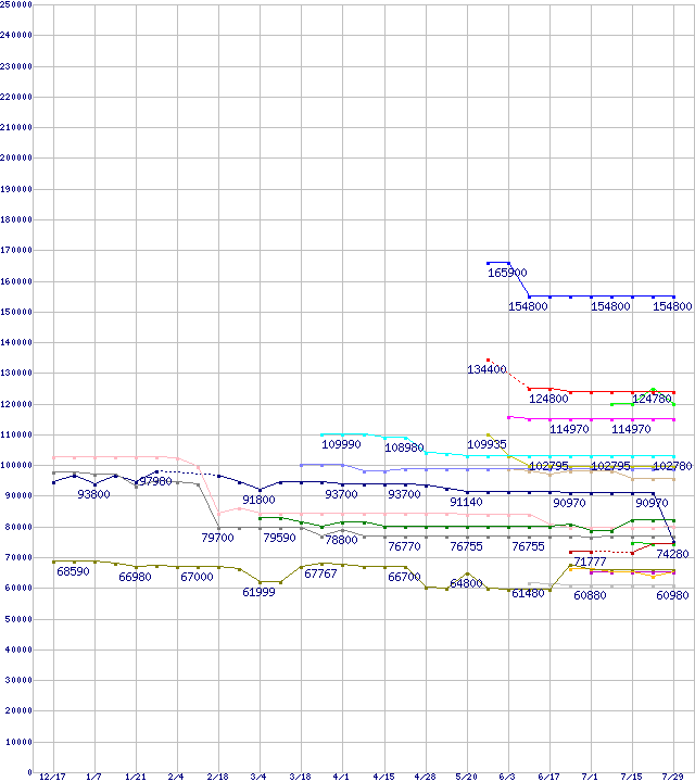 CPU主要製品(最安値3万円~6万円未満)の最安値推移
