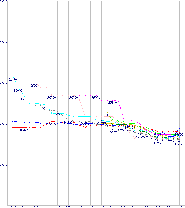 HDD主要製品(最安値2万円以上)の最安値推移