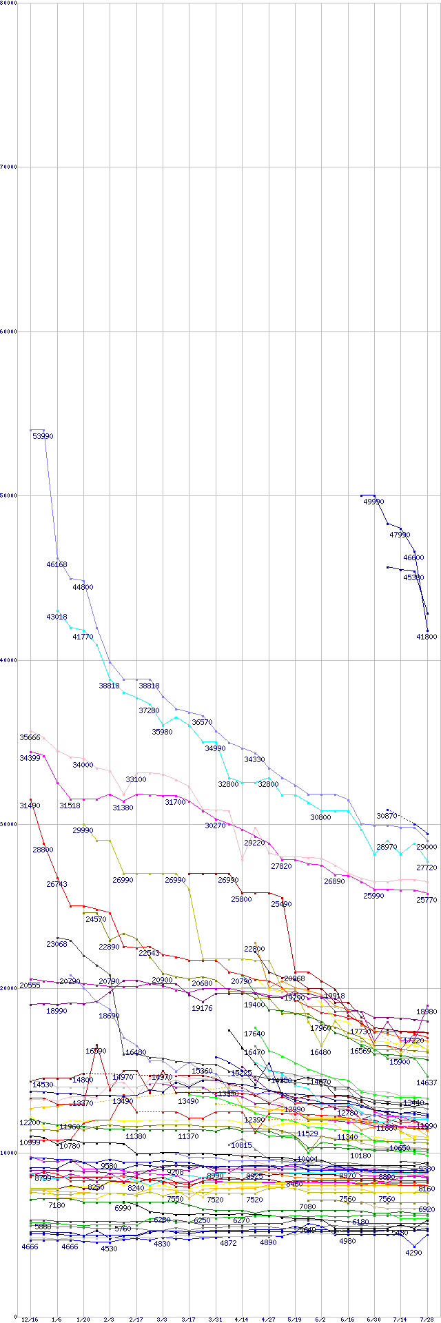 | HDD主要製品の最安値推移 | | | (2004年12月16日~2005年7月28日) |