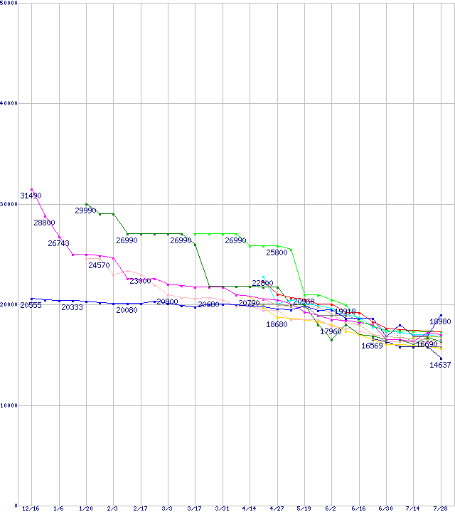 HDD 400GB以上の最安値推移