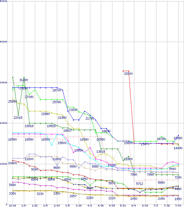 PC2-4200*(DDR2-533) DDR2 SDRAM DIMMの最安値推移