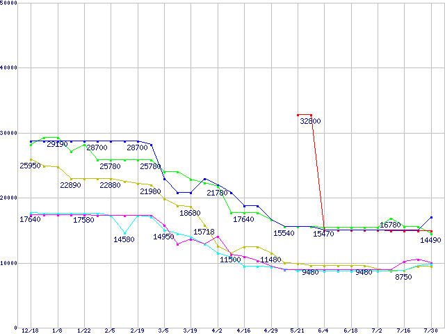 メモリ主要製品の最安値推移