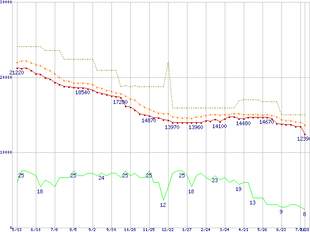 | 7Y250M0 (250GB)の価格推移 | | | (2004年5月13日~2005年7月28日) |